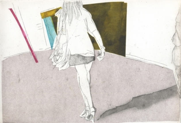 Sortie 6: Aquatinte, chine collé, papier Rives, 20X30